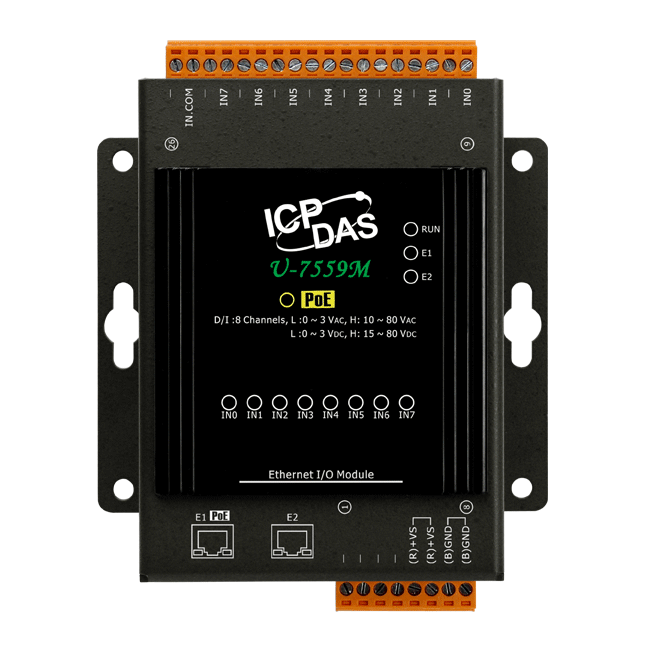 Модуль с 8 каналами дискретного ввода (Мокрый контакт, 10~80 В перем., ±15~±80 В пост.), со встроенным 2-портовым Ethernet-коммутатором, протокол OPC UA