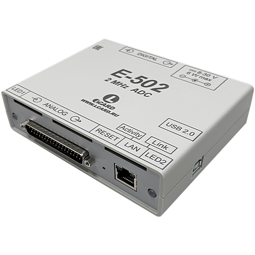 2 МГц (1,5 МГц при синхронизации частоты преобразования от другого модуля E-502)