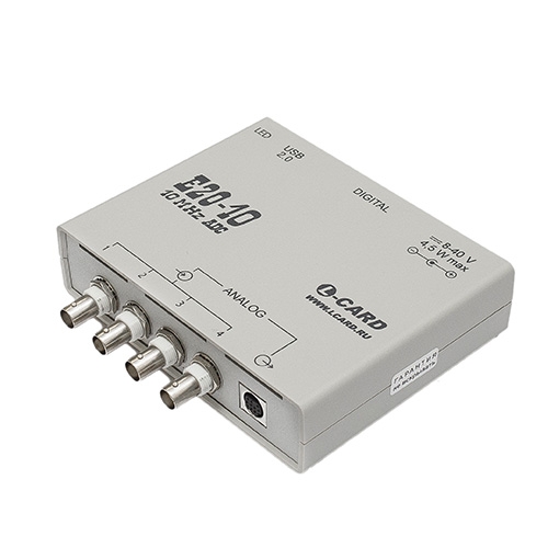 Быстродействующий внешний модуль ввода/вывода на шину USB 2.0, полоса пропускания 5 МГц, установлен 2-канальный ЦАП, индустриальный, с поверкой