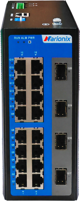 Управляемый промышленный Full Gigabit Ethernet коммутатор 2 уровня, 16 x 1G RJ45, 2 x 1G SFP, 2 x 2.5G SFP, питание 2 x 85~264VAC/DC, монтаж на DIN-рейку