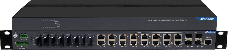 Управляемый промышленный Gigabit Ethernet коммутатор 2 уровня для энергетики IEC 61850-3, 16 x 1G RJ45, 8 x 100M оптика, 4 x 1G SFP, питание 2 x 85-264VAC/77-300VDC, монтаж в стойку 19″