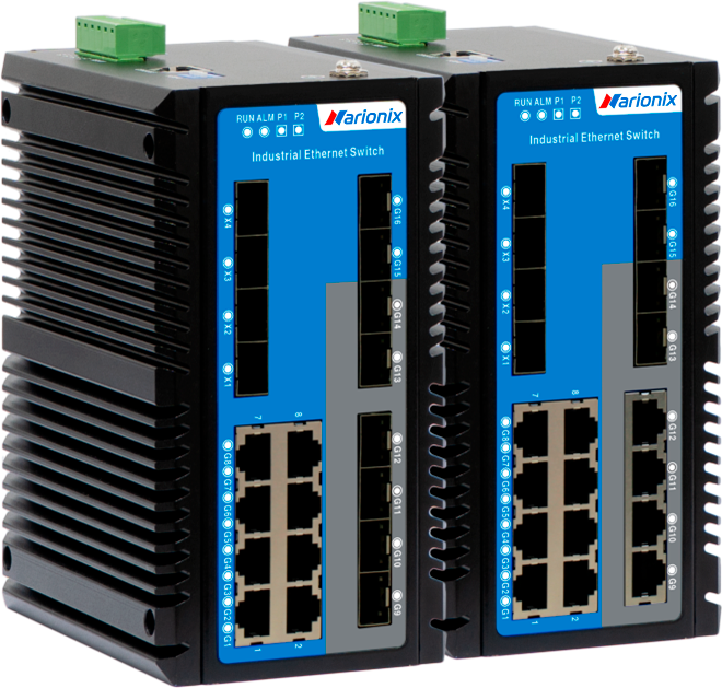 Управляемый промышленный Full Gigabit Ethernet коммутатор 3 уровня, 12 x 1G RJ45, 4 x 1G SFP, 4 x 10G SFP+, питание 2 x 12~48VDC, монтаж на DIN-рейку