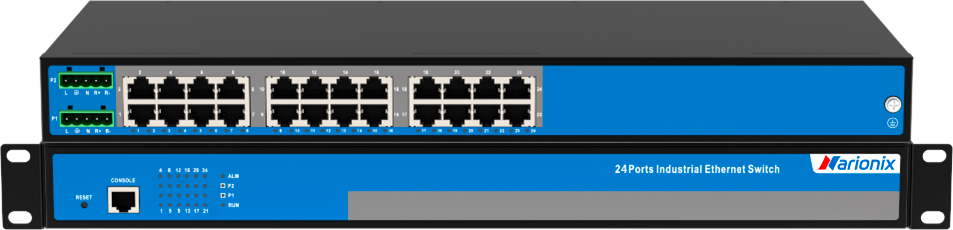 Неуправляемый промышленный Fast Ethernet коммутатор, 24 x 100M RJ45, питание 2 x 18~72VDC, монтаж в стойку 19″
