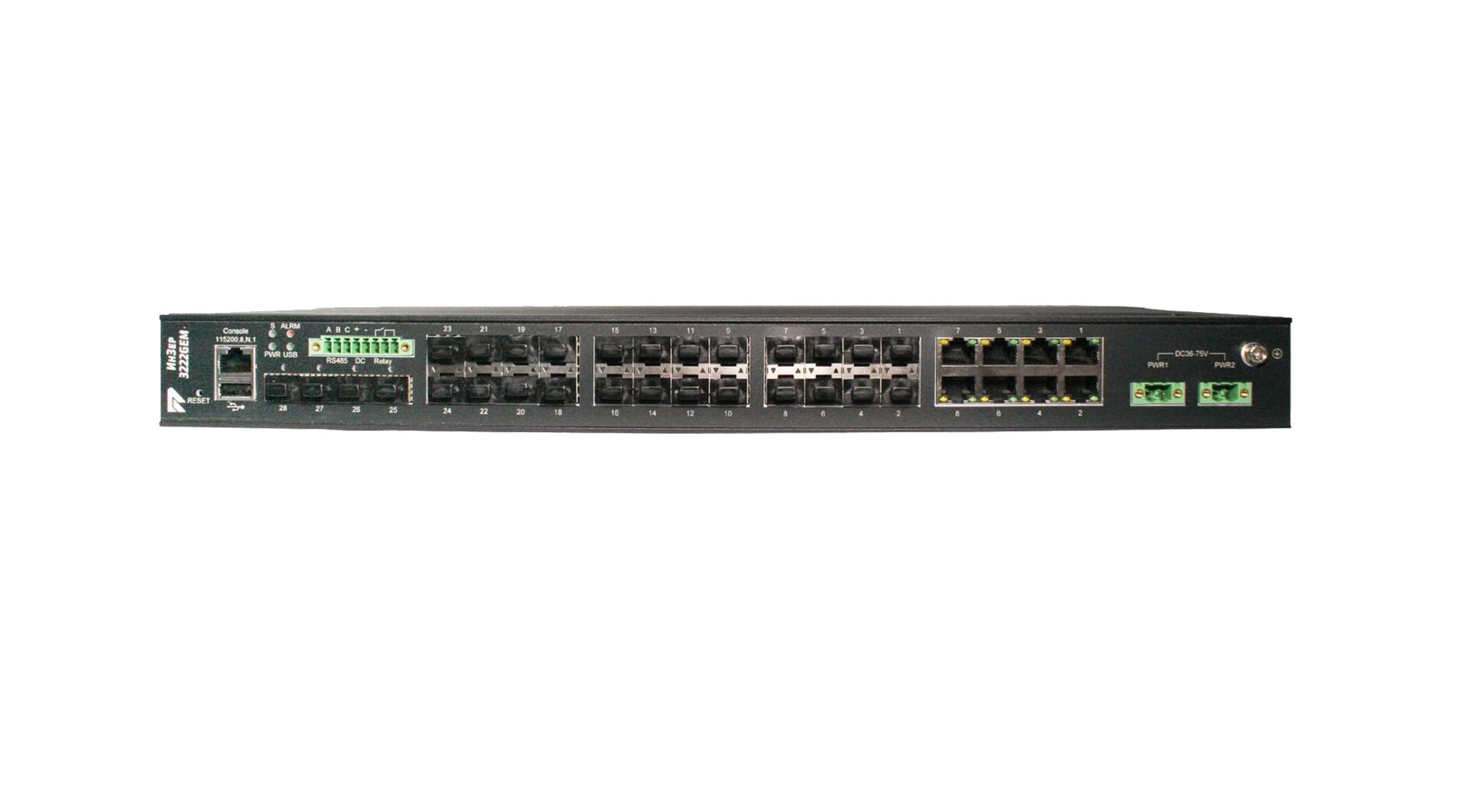 Управляемый коммутатор L3 в стойку 19" c 4 слотами 1/10GBase-X SFP+, 8 Combo-портами (10/100/1000BaseTX или 100/1000BaseSFP), 16 слотами 100/1000Base-X (SFP), один вход питания 100-240В перем., два входа питания 36-75 В пост., рабочий диапазон температур -40..+70°С
