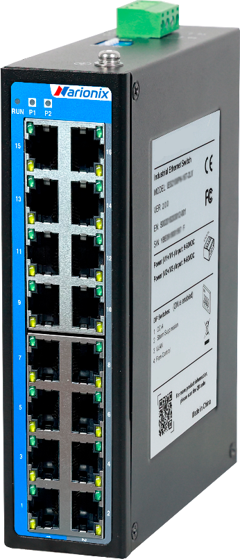 Неуправляемый промышленный Fast Ethernet коммутатор, 16 x 100M RJ45, питание 2 x 9~60VDC, монтаж на DIN-рейку