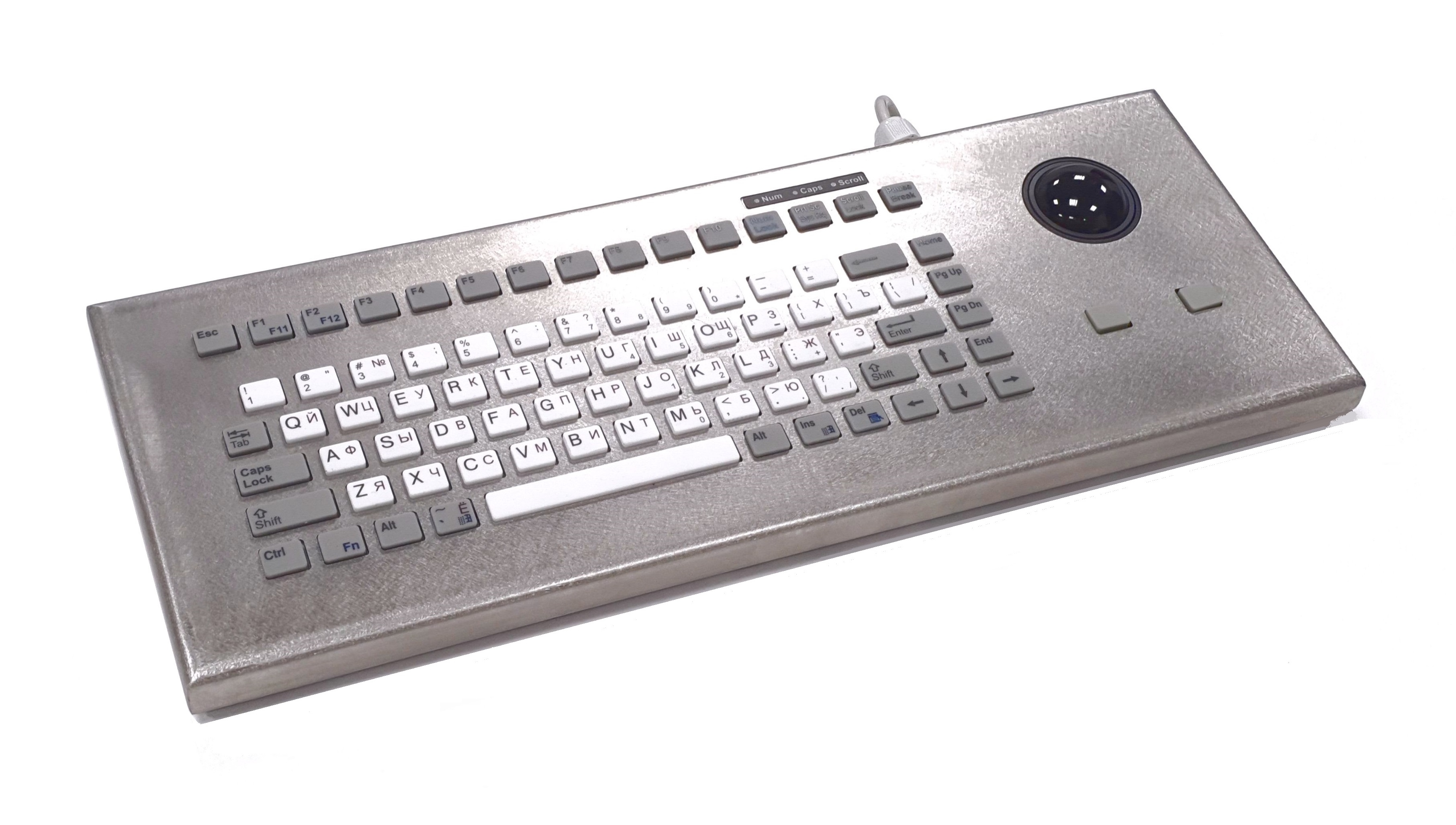 Настольная силиконовая клавиатура с трекболом 38 мм Cursor Controls в корпусе из нержавеющей стали, IP65, корпус из нержавеющей стали, трекбол 38 мм, белая подсветка, USB.