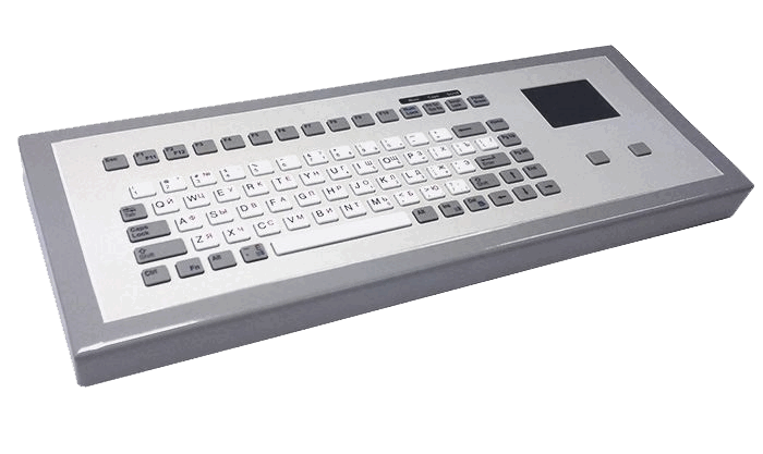Настольная силиконовая клавиатура с тачпадом в металлическим корпусе, русифицированная, 83 клавиши (силикон, carbon-on-gold), тачпад, цвет корпуса – серый.