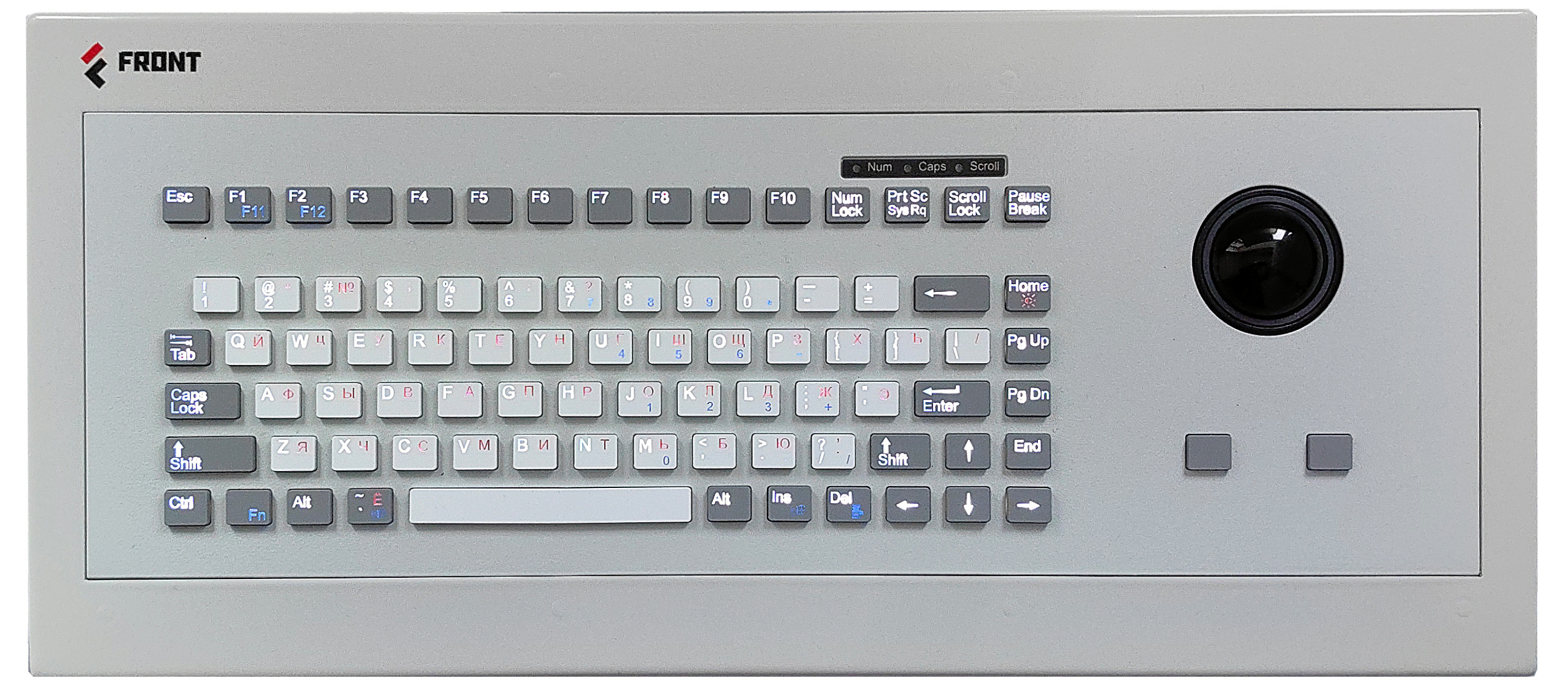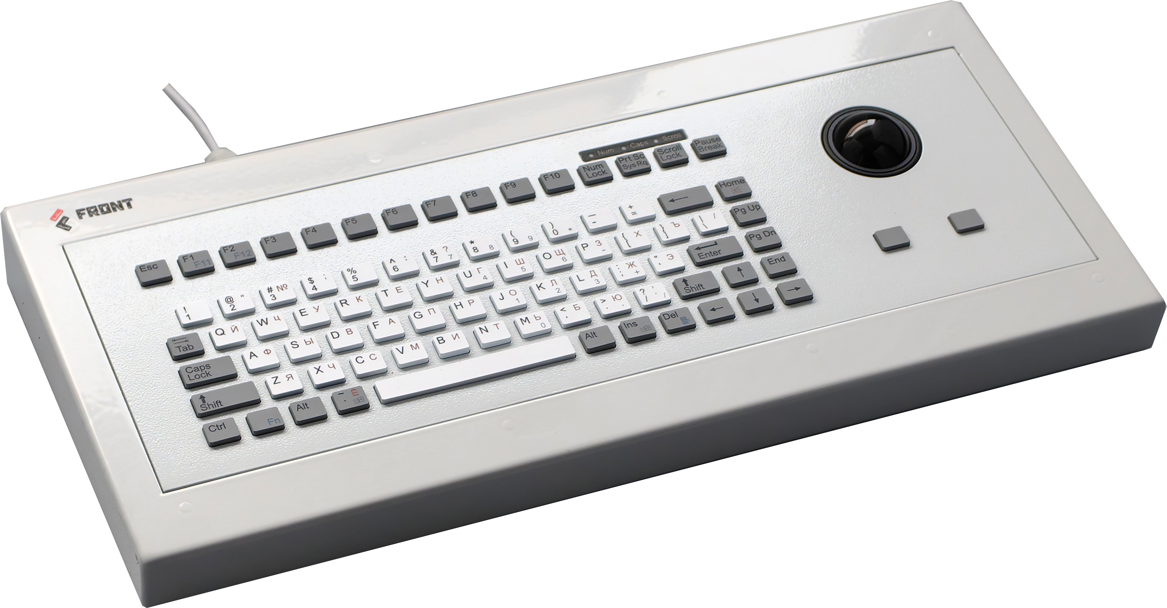 Настольная силиконовая клавиатура с тачпадом в металлическим корпусе, русифицированная, 83 клавиши (силикон, carbon-on-gold), трекбол 38 мм, белая подсветка, USB, цвет корпуса – серый.