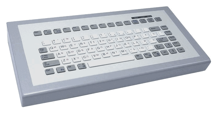 Настольная силиконовая клавиатура в металлическом корпусе, русифицированная, 83 клавиши (силикон, технология контактов - carbon-on-gold), белая подсветка, цвет корпуса – серый.