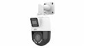 Сдвоенная видеокамера IP Мини-PTZ, 2 x 1/2.8", 2 x 2 Мп КМОП @ 25 к/с, ИК-подсветка до 10м (обзорная камера), ИК-подсветка до 50м (поворотная камера), подсветка видимого спектра до 10м.(поворотная камера), LightHunter 0.002 Лк @F1.6, объектив 2.8-12.0 мм моторизованный с автофокусировкой (поворотная камера), объектив 2.8 мм (обзорная камера), WDR (обзорная камера), DWDR (поворотная камера), 2D/3D DNR, Ultra 265, H.265, H.264, MJPEG, 2 потока, 2 (два) встроенных микрофона и динамик,защита периметра (пересечение линии, вторжение, вход, выход из зоны, захват лиц, подсчёт людей), аудиодетекция, поддержка Micro SD карт памяти до 256 Гбайт, диапазон панорамирования 345°, диапазон наклона -10~100°, число предустановок 256, кнопка сброса, IP66, -30~+60°C, Deep learning(Защита периметра)