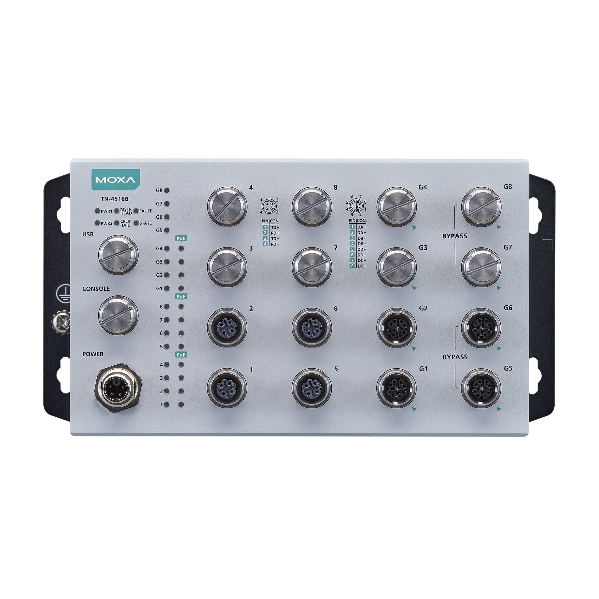 Управляемый коммутатор 2 уровня с 16 портами, включая 8 портов Fast Ethernet c PoE, 4 порта Gigabit Ethernet с PoE, 4 порта Gigabit Ethernet с Bypass, PoE бюджет коммутатора 150 Вт, рабочее напряжение 24-110 В пост., рабочая температура -40 ~ +70 °C, с конформным покрытием, защита IP42