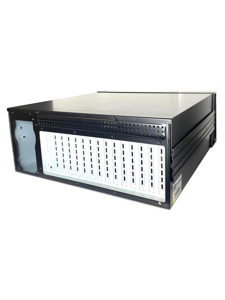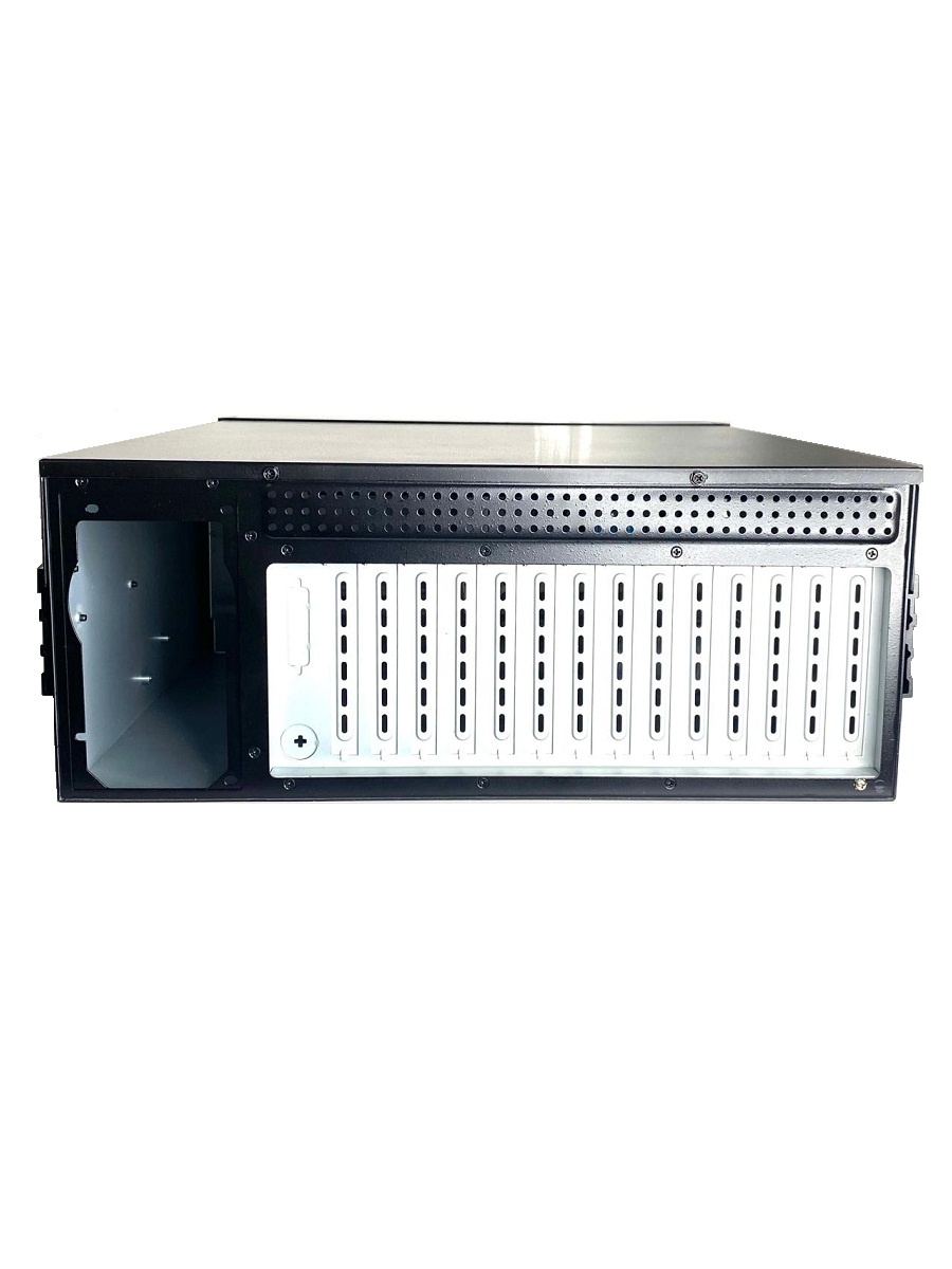 Промышленный компьютерный корпус AX61400TB, 4U, 14 слотов, 3 x 5.25" HDD, 1 x 3.5" HDD, 1 x 3.5" HDD (внутренний), 2 x USB, 1 x PS2, цвет - черный, без БП, 0...+40°C