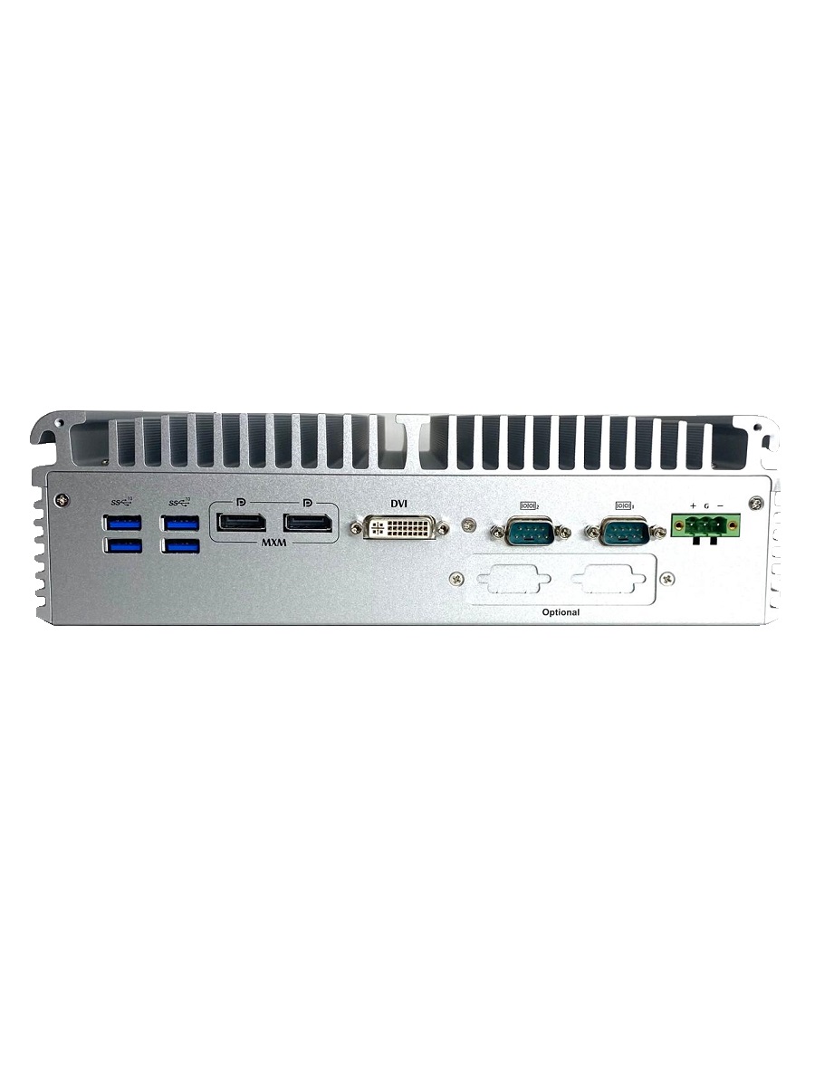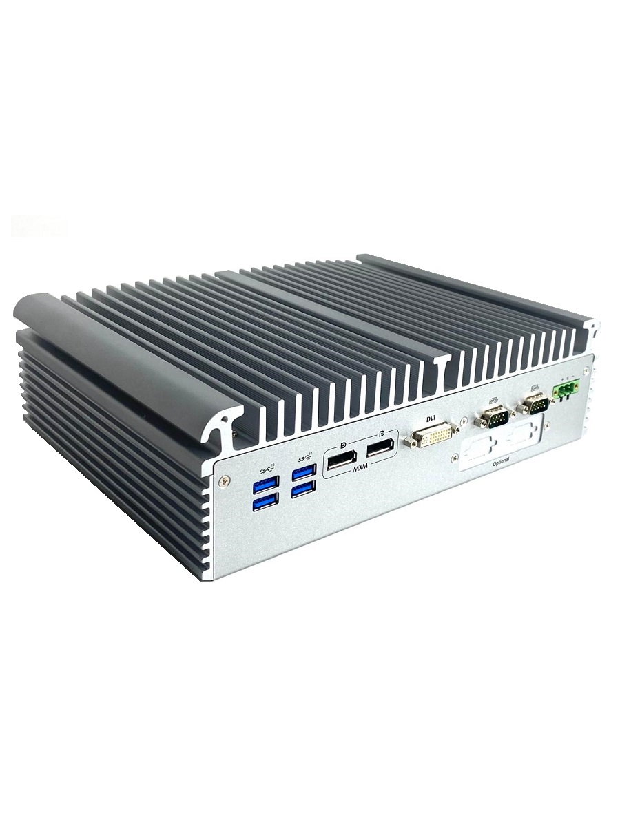 Компактный безвентиляторный компьютер eBOX671-521-FL-DC-4PoE, LGA1151, поддержка процессора 8-го поколения Intel® Core™ i7/i5/i3 и Celeron®, чипсет Intel® Q370, 1 х DVI-I, 1 х HDMI, 2 x 2.5" HDD, 4 х PoE, 2 х GbE, 4 x USB 3.1 Gen2, 2 x USB 3.1 Gen1, 2 x RS-232/422/485, 2 x Full-size PCI Express Mini Card (USB + PCIel), 2 x SIM, 1 x внутреннийl MXM3.1 type A, 24 В DC