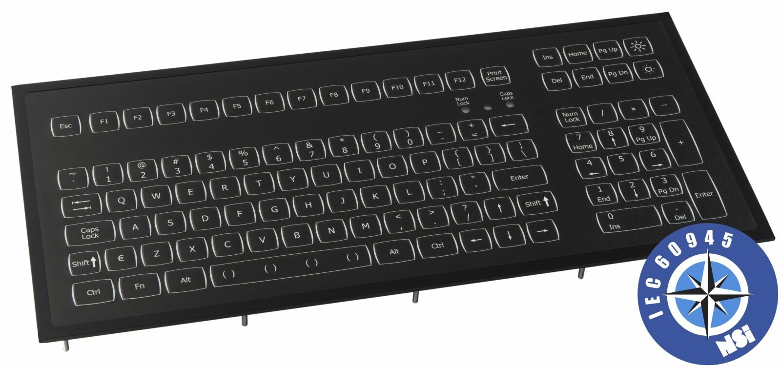 Клавиатура для морского применения KSM103B0007-W-MC1 встраиваемая, русифицированная, соответствие IEC60945, защита по IP 67, 103 клавиши, белая подсветка, USB, -15°C ...+60°C