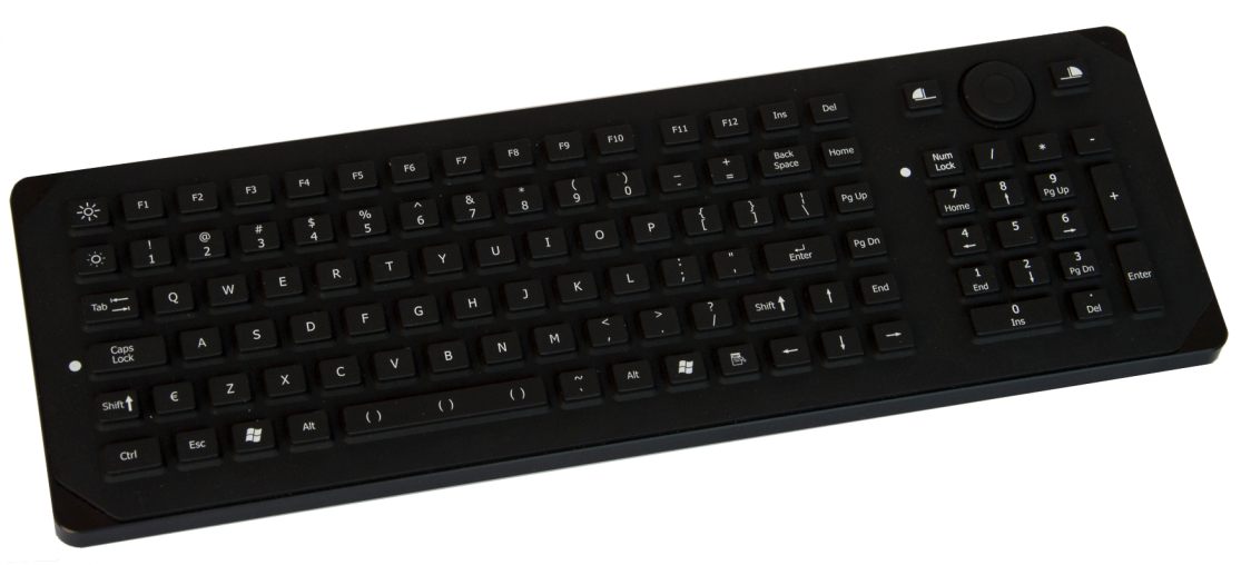 Промышленная клавиатура RKMB105V7USB-WLED настольная, силиконовая, русифицированная, IP 65, 105 клавиш, кнопки мыши, белая подсветка, крепление VESA