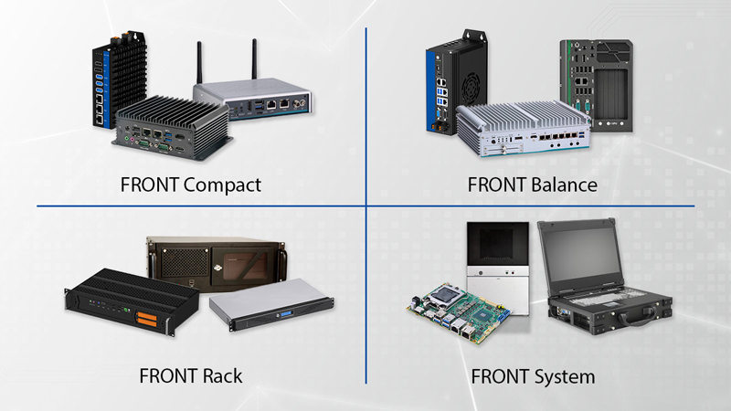 На данный момент существует четыре серии компьютеров FRONT, начиная от ультракомпактных энергоэффективных ПК, и заканчивая производительными серверами в 19" стойку, а также специализированными моделями под проект.